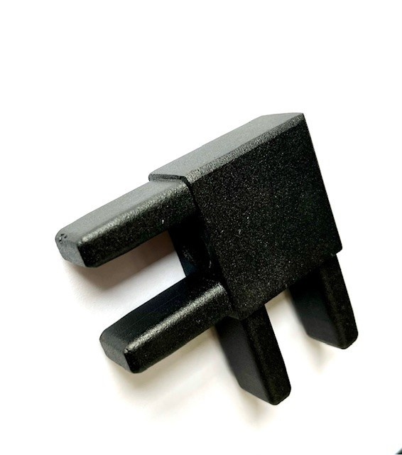 Dieses Eckstück kann einfach mit einem Kunststoffhammer in die Träger eingeschlagen werden.