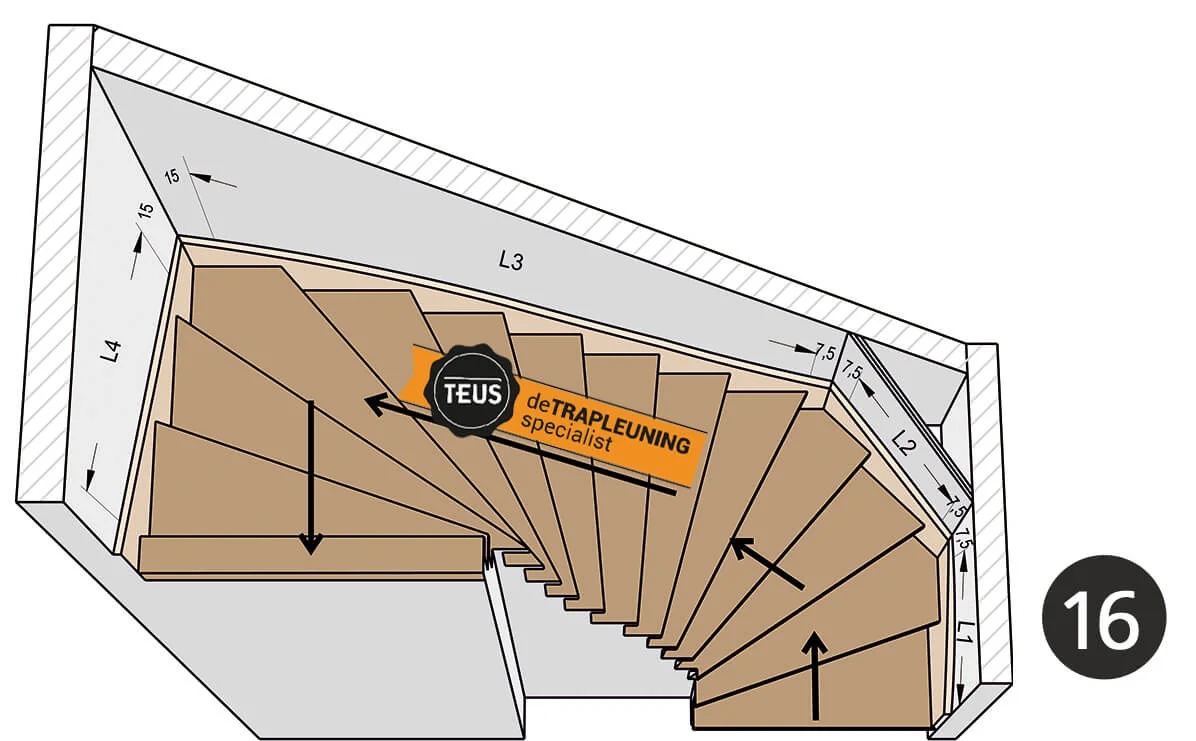 Wenn du deine Treppe im Konfigurator für gebogene Geländer auswählst, weiß Teus genau, wie die Geländer gebogen werden müssen. Dieses Treppengeländer-Set wird dann sorgfältig gebogen, sodass die Stahlgeländer der Lauflinie deiner Treppe folgen.