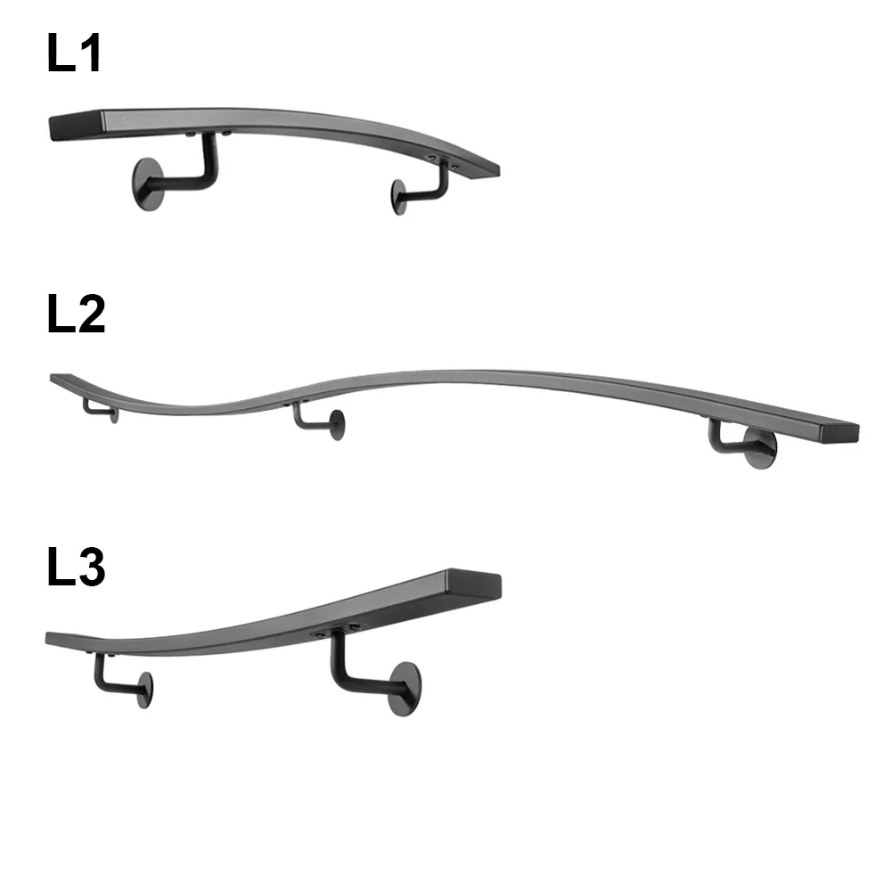 Diese gebogenen Treppengeländer sind aus hochwertigem Stahl gefertigt. Die Handläufe sind mit einer mattschwarzen Pulverbeschichtung mit feiner Struktur versehen, die für besonders guten Halt sorgt. Darüber hinaus ist diese Beschichtung extrem hart und daher sehr verschleißfest. Ein weiterer großer Vorteil ist, dass die schwarze Beschichtung Staub und Schmutz abweist, sodass eine Reinigung kaum erforderlich ist.
