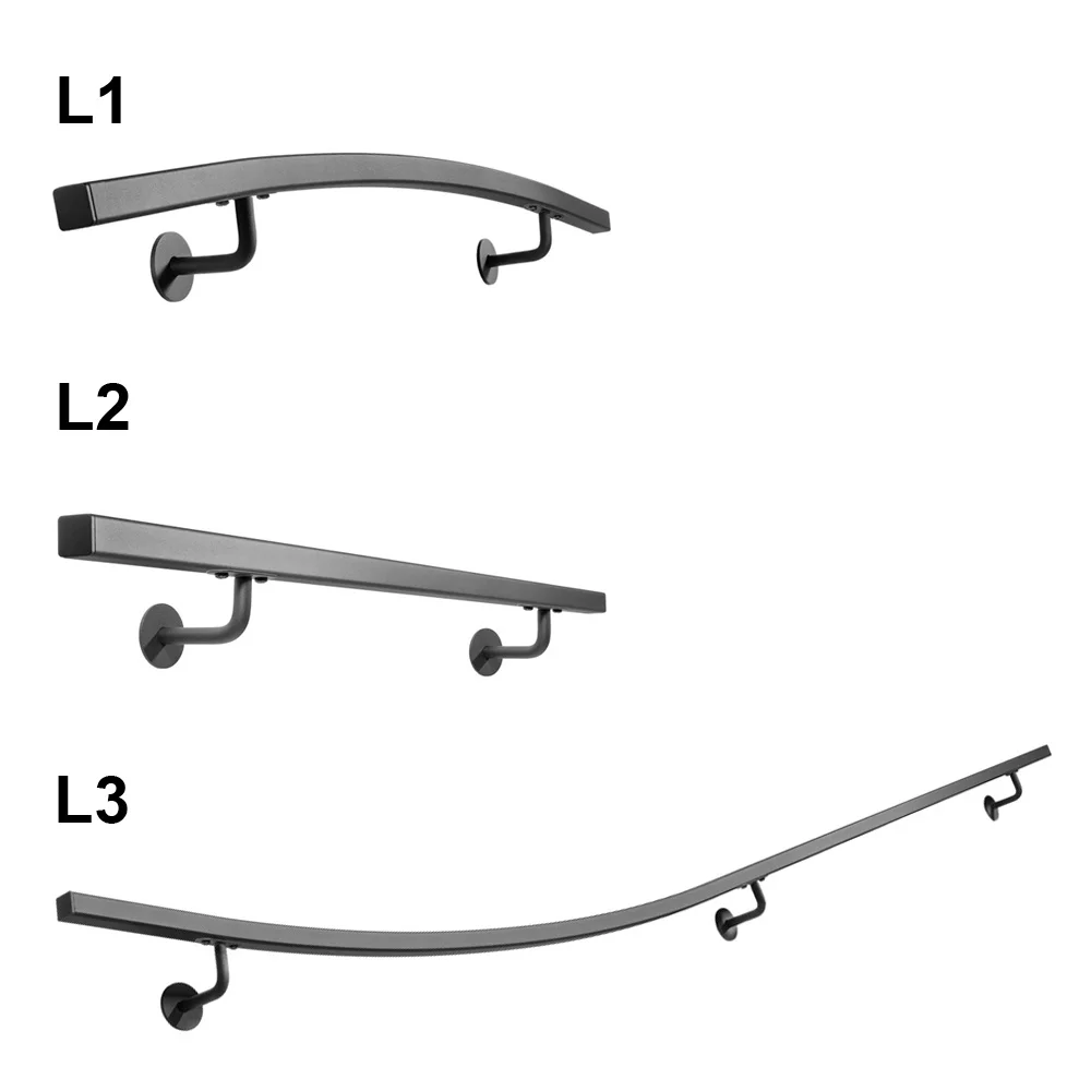 Diese gebogenen Treppengeländer sind aus hochwertigem Stahl gefertigt. Die Handläufe sind mit einer mattschwarzen Pulverbeschichtung mit feiner Struktur versehen, die für besonders guten Halt sorgt. Darüber hinaus ist diese Beschichtung extrem hart und daher sehr verschleißfest. Ein weiterer großer Vorteil ist, dass die schwarze Beschichtung Staub und Schmutz abweist, sodass eine Reinigung kaum erforderlich ist.