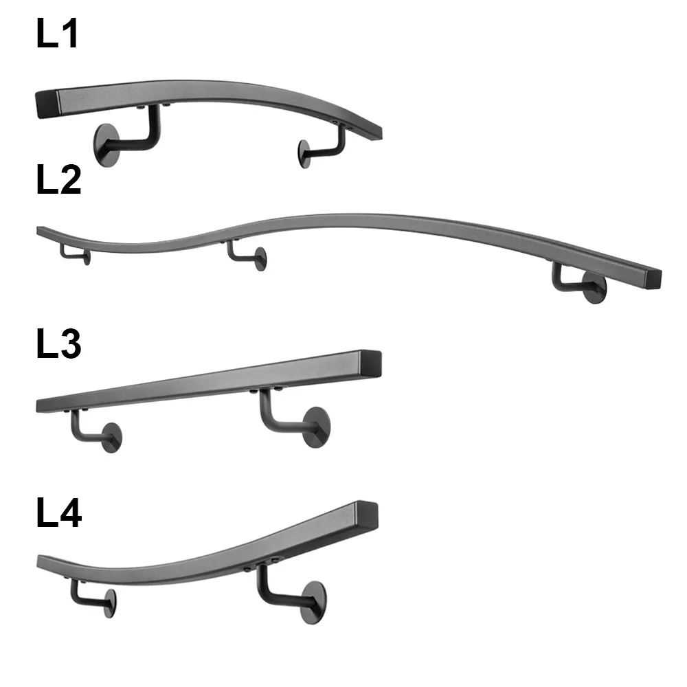 Diese gebogenen Treppengeländer sind aus hochwertigem Stahl gefertigt. Die Handläufe sind mit einer mattschwarzen Pulverbeschichtung mit feiner Struktur versehen, die für besonders guten Halt sorgt. Darüber hinaus ist diese Beschichtung extrem hart und daher sehr verschleißfest. Ein weiterer großer Vorteil ist, dass die schwarze Beschichtung Staub und Schmutz abweist, sodass eine Reinigung kaum erforderlich ist.