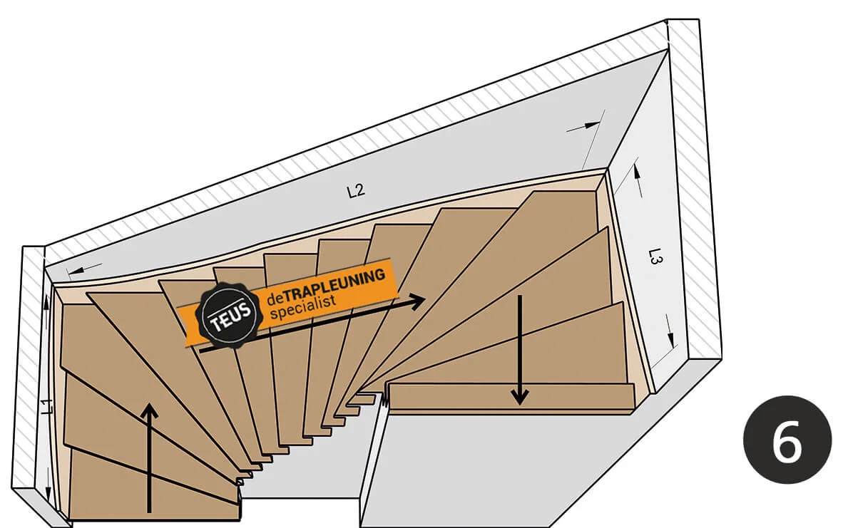 Da ein Treppentyp ausgewählt wurde, weiß Teus, wie und wo das Geländer gebogen werden muss, sodass keine komplizierten Maßangaben erforderlich sind! Teus wird die Geländer so biegen, dass sie dem Verlauf der Treppe folgen. Müssen die Geländer nach bestimmten Normen gebogen werden, kann dies gegen einen Aufpreis ausgeführt werden.