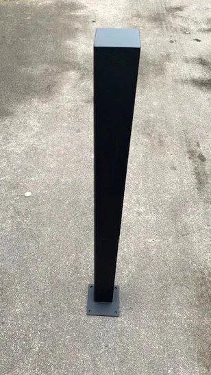 Natürlich ist der Pfosten auch matt schwarz pulverbeschichtet. Du kannst den Pfosten montieren, indem du die angeschweißte Fußplatte mit 4 Löchern à 10 mm verwendest.