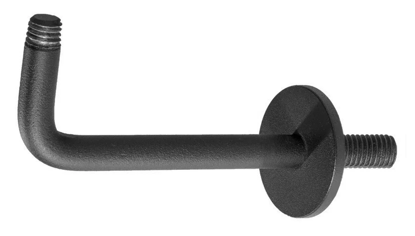 Zwart leuninghouder voor het monteren van een zwarte trapleuning aan de muur of wand.