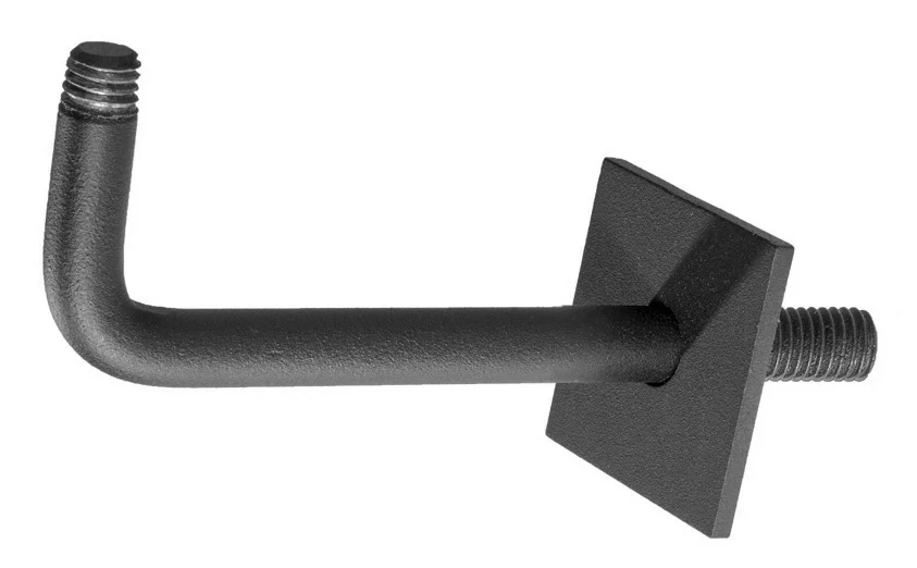 Zwart leuninghouder voor het monteren van een zwarte trapleuning aan de muur of wand.