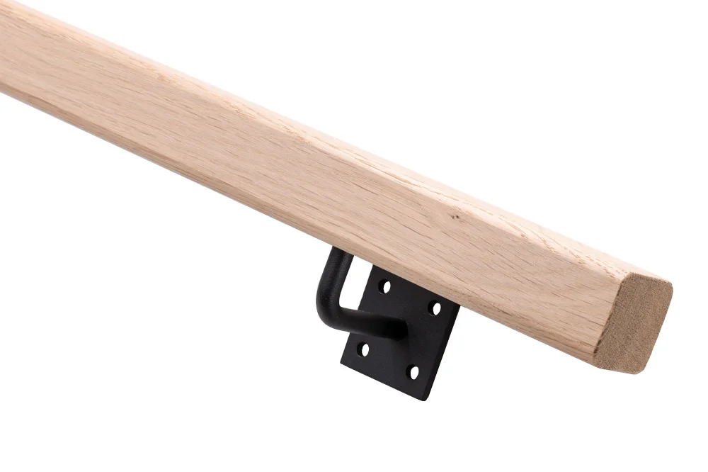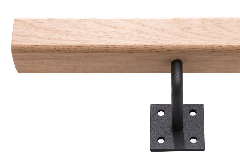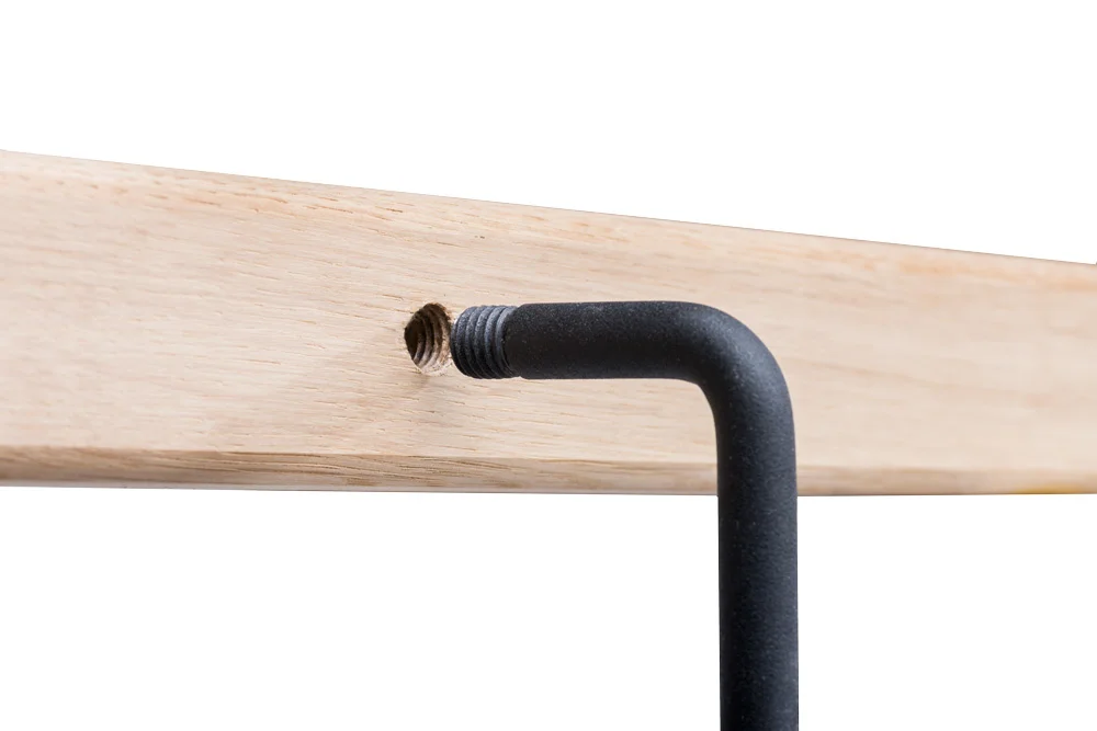 Wie du es vielleicht schon gewohnt bist, hat Teus auch hier Löcher in das Geländer gebohrt, in die du die Geländerhalter einfach einschrauben kannst. Dies sorgt nicht nur für ein sehr sauberes Ergebnis, sondern ist auch äußerst stabil und verhindert eventuelles Spiel zwischen Halter und Geländer bei intensiver Nutzung. Also ein Treppengeländer, an dem du innerhalb weniger Minuten die Geländerhalter an- (oder besser gesagt in-) montierst. Danach schraubst du das Treppengeländer mit den mitgelieferten schwarzen Schrauben fest an die Wand.