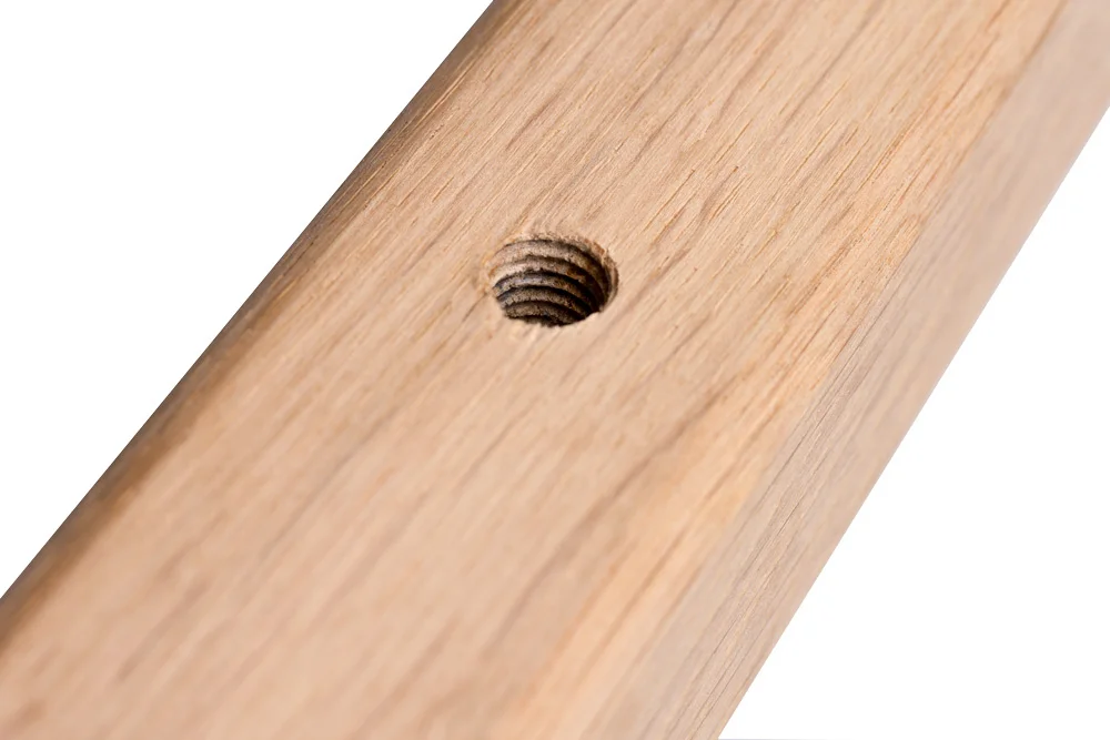 Teus kann sich gut vorstellen, dass du das Treppengeländer zuerst ansehen und/oder fühlen möchtest. Das ist natürlich in der Produktionshalle von Teus möglich, allerdings nur nach Terminvereinbarung. Es ist auch möglich, ein Probestück nach Hause zu erhalten, um sich ein gutes Bild von der Qualität zu machen, die Teus liefert. In diesem Probestück aus Stahl hat Teus bereits ein Gewindeloch gebohrt, in das du die mitgelieferte Halterung sauber und stabil einschrauben kannst. Diese Methode ist einzigartig und wurde von Teus entwickelt.