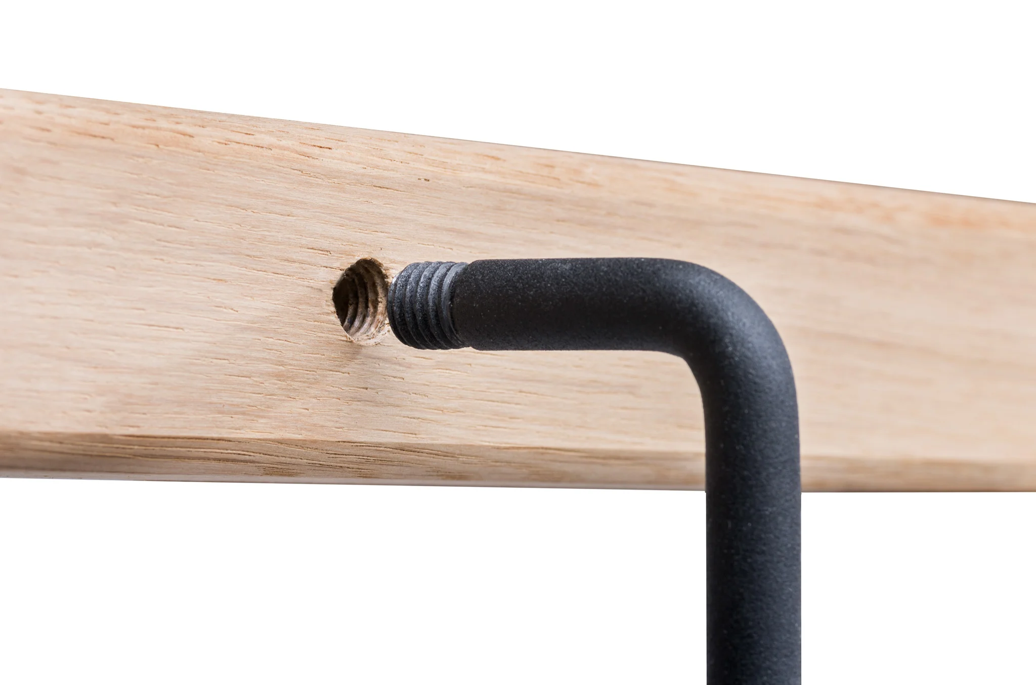 Teus kann sich gut vorstellen, dass du das Treppengeländer zuerst ansehen und/oder fühlen möchtest. Das ist natürlich in der Produktionshalle von Teus möglich, allerdings nur nach Terminvereinbarung. Es ist auch möglich, ein Probestück nach Hause zu erhalten, um sich ein gutes Bild von der Qualität zu machen, die Teus liefert. In diesem Probestück aus Stahl hat Teus bereits ein Gewindeloch gebohrt, in das du die mitgelieferte Halterung sauber und stabil einschrauben kannst. Diese Methode ist einzigartig und wurde von Teus entwickelt.