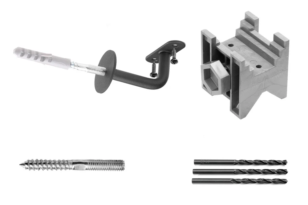 Teus liefert dazu eine praktische Bohrschablone, 3 Bohrer und eine Anleitung. Dies wurde speziell für die Renovierung von Treppen und/oder Fluren entwickelt, sodass du die Halterungen montieren kannst, ohne neue Löcher in die Wand bohren zu müssen!